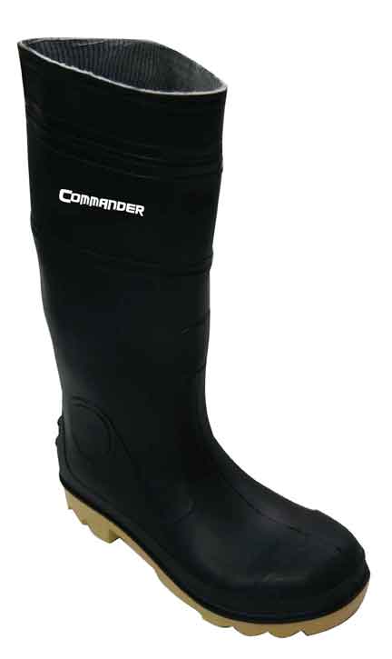 Botas d/pvc negra punta metal talla 8. Negro. Size 8