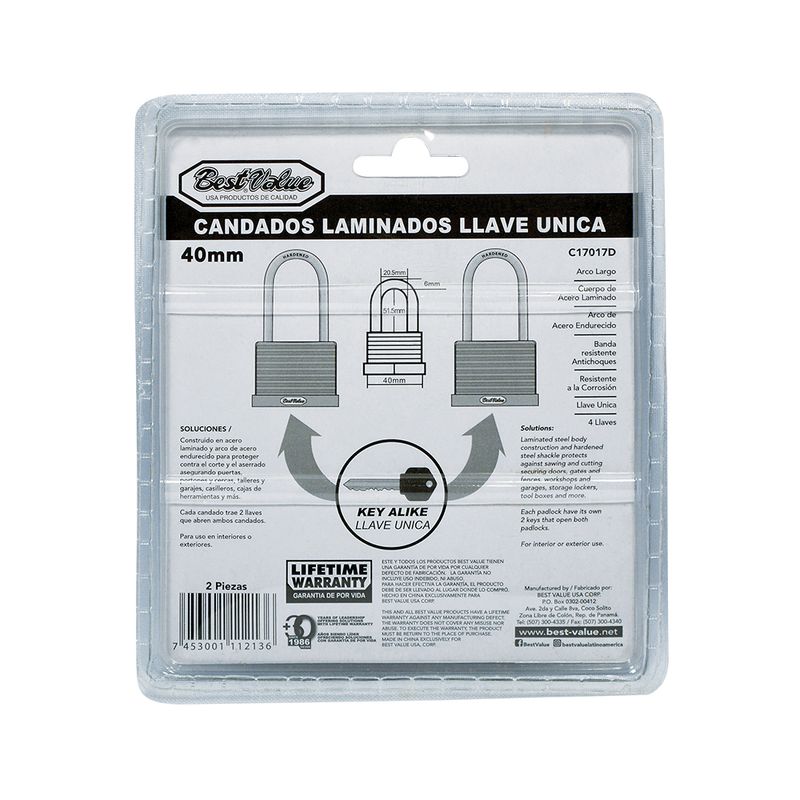 Candado laminado 40mm (2pcs)arcolargo. Laminado. 2 pcs