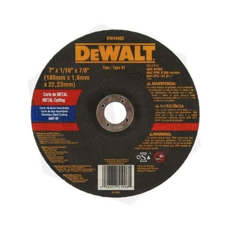 Disco corte metal dw 7x1/16 t27 dw44602. Gano oxido de aluminio. 7 x 1/16