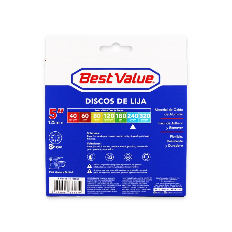 Disco de lija 5 gano 240g 5pzas. Rojo. #240
