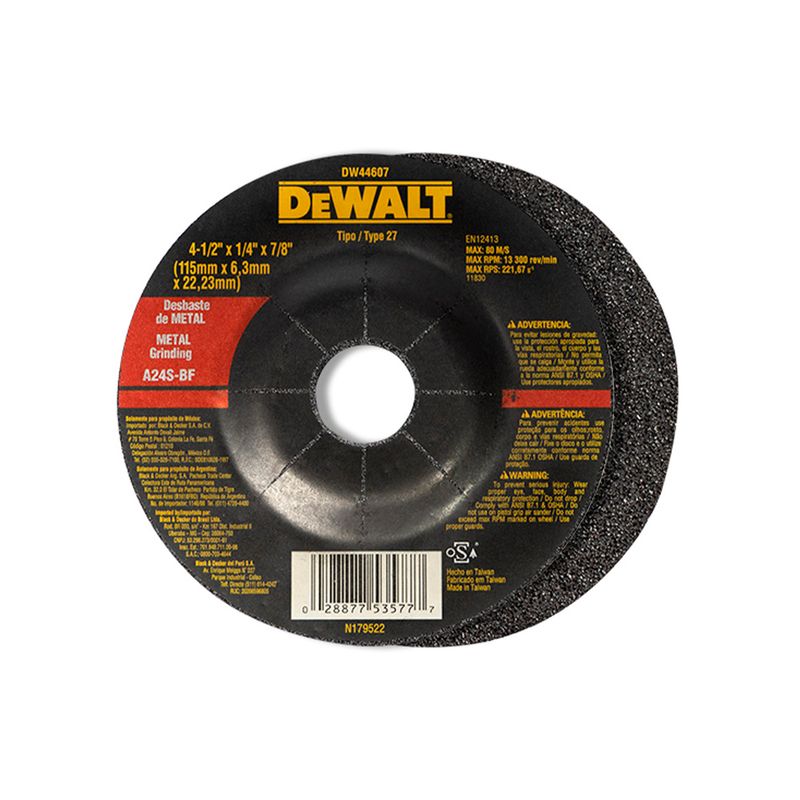 Disco desbaste metal 4-1/2x1/4 dw44540. Gano oxido de aluminio. 4-1/2 x 1/4