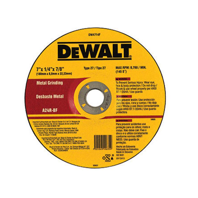 Disco desbaste metal dw 7x1/4 dw4714f. Gano oxido de aluminio. 7 x 1/4