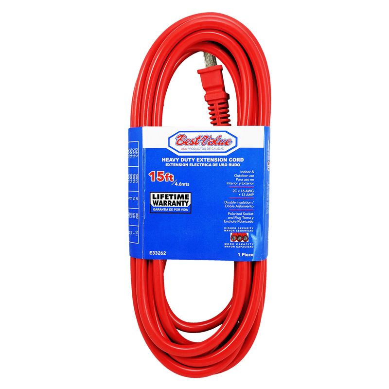 Extension electrica roja c16 15'. Color rojo. Multipropósito