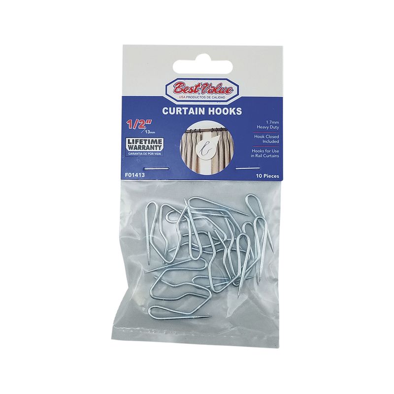 Gancho para cortina (10 pcs). Plateado. 1. 7mm