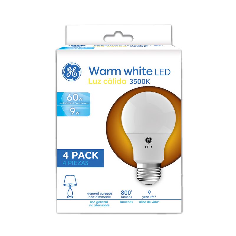Led ge 10w a19 3500k 800lm ul 4 pack. Luz calida.