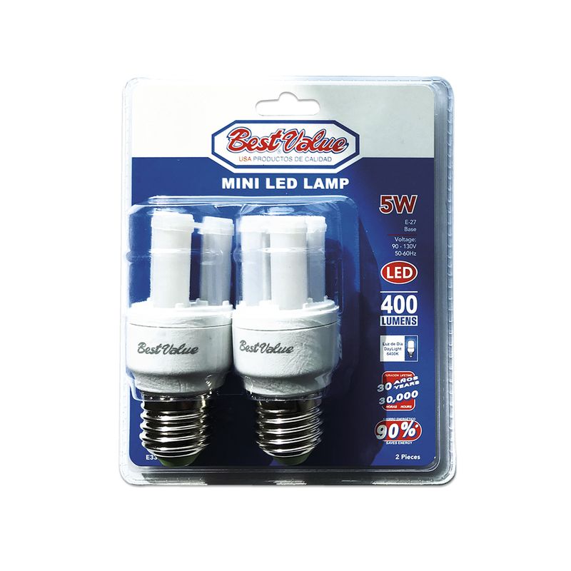 Led mini 5w 6400k 400l 2-pack e27. Blanco.