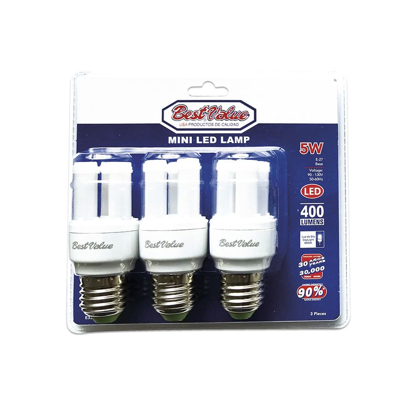 Led mini 5w 6400k 400l 3-pack e27. Blanco.