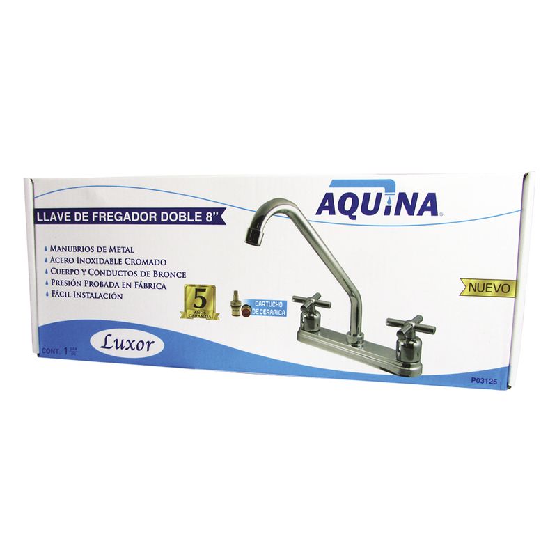 Llave d/fregador doble luxor 8 aquina. Cromado.
