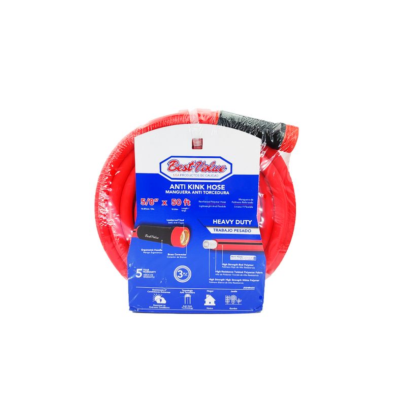 Manguera antitorcedura 5/8 x 50' 3 capas. Rojo. 50 pies