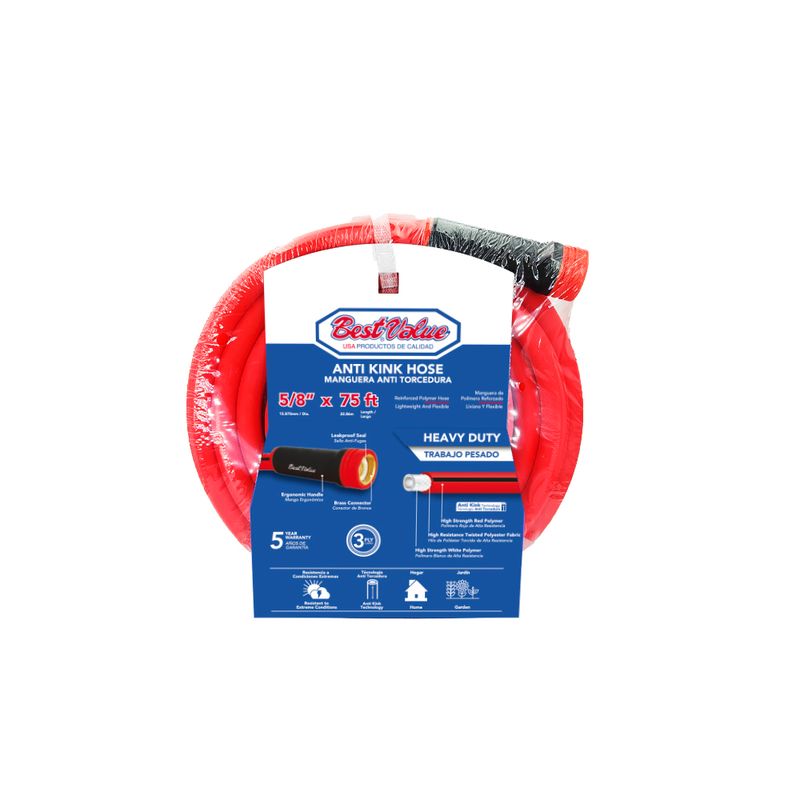 Manguera antitorcedura 5/8 x 75' 3 capas. Rojo. 75 pies