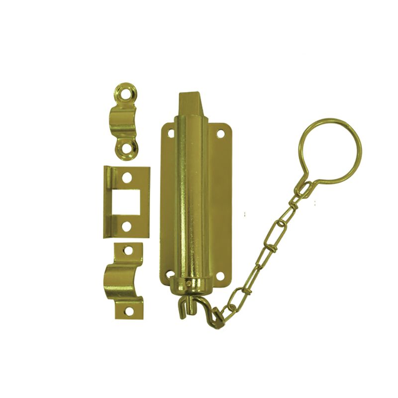 Picaporte con cadena y resorte dorado 3. Dorado. 3