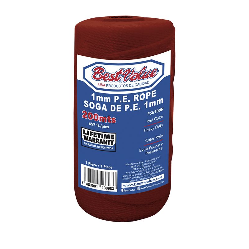 Soga polyetileno x 200 mts rojo. 1mm 200mts