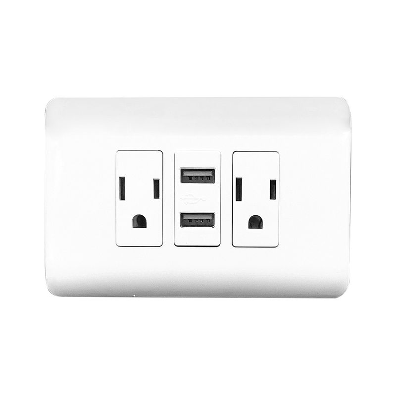 Tomacorriente doble +2 puertos usb 2. 1amp 127-250v 15amp. Blanco. 3 x 4-1/2